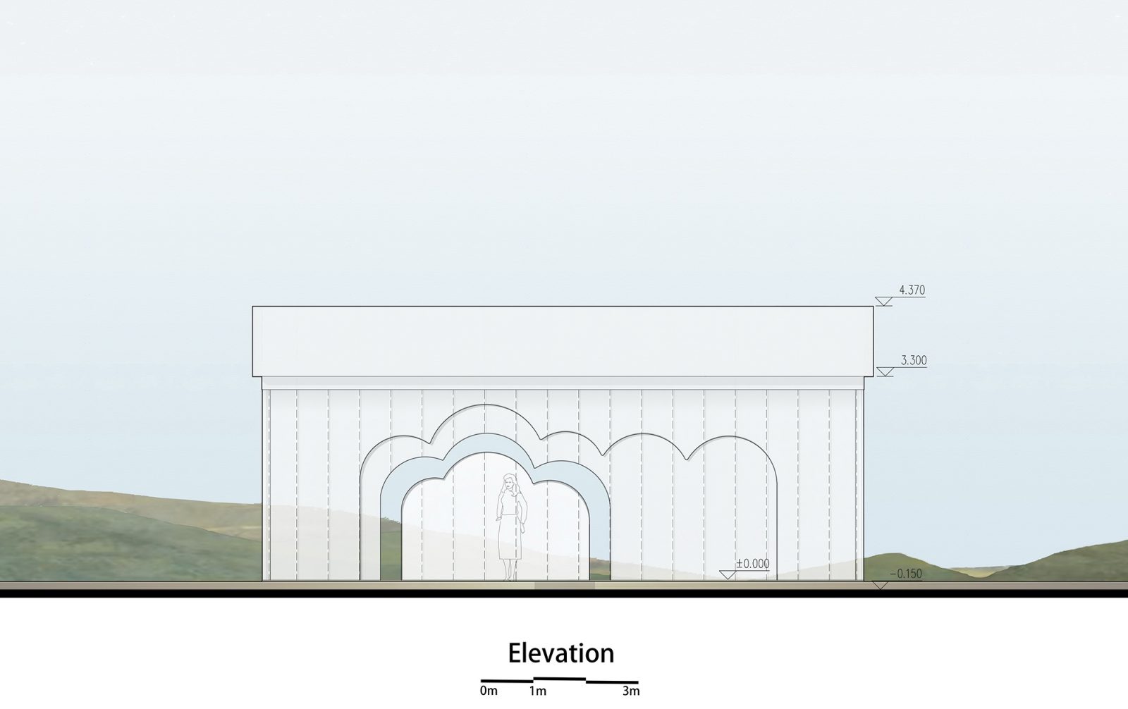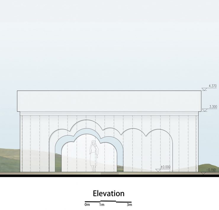 Usando come simbolo espressivo la nuvola – il motivo preferito della figlia del fondatore di Wutopia – gli strati di pannelli di policarbonato formano porte frastagliate e silhouette sovrapposte per movimentare il paesaggio e ispirare emozioni.