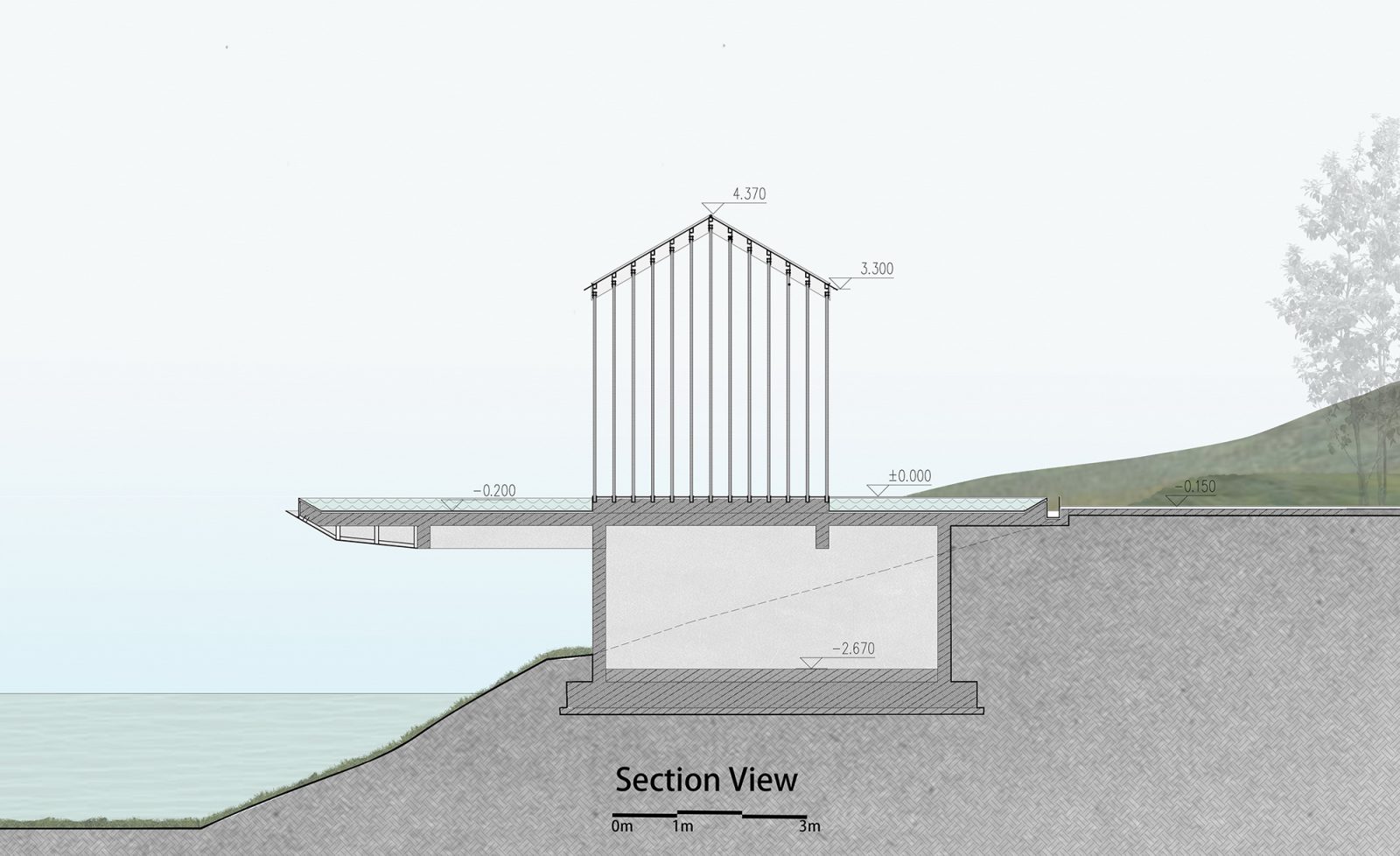 La piccola architettura, uno spazio di appena 35 metri quadrati, faceva parte di un impianto agricolo del gruppo alimentare Bright Food. Il cliente, la società Shanghai Qian Yi Agricultural Development Co. voleva approfittare dell’eccellente vista sul fiume per trasformare quella che una volta era un’infrastruttura agricola in un’area di sosta per i visitatori, mantenendo uno stretto legame con il territorio locale.