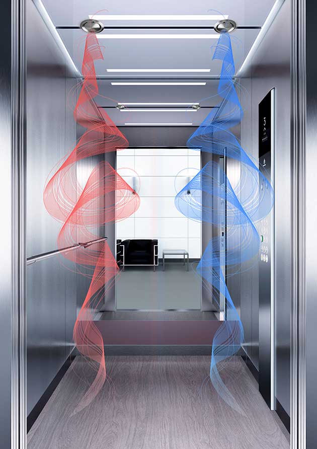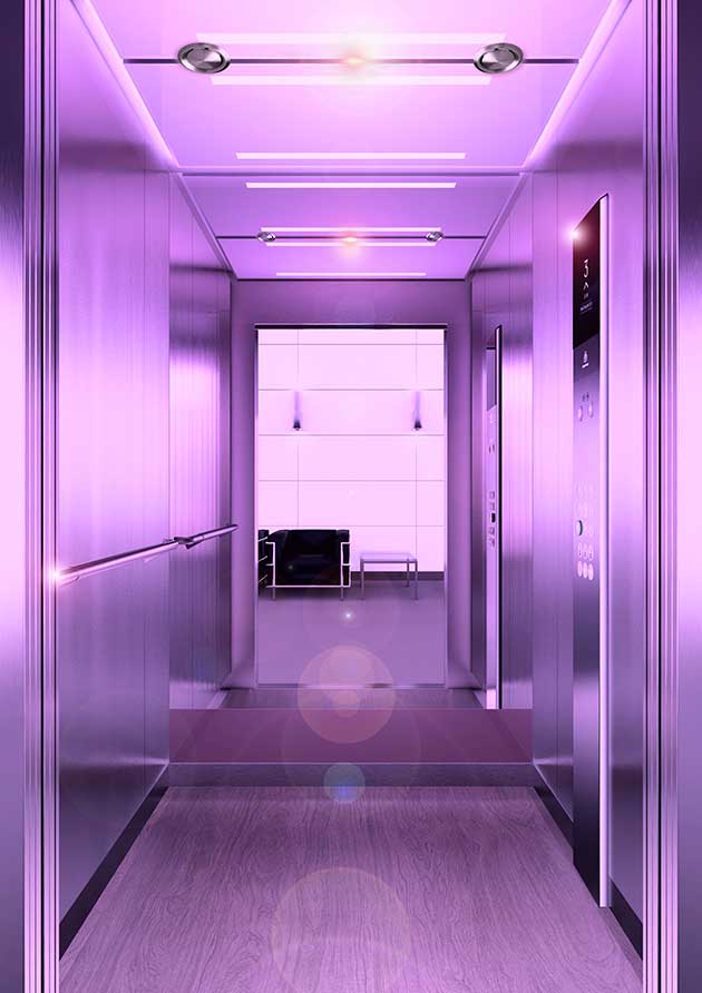 Un fascio di luce ultravioletta Uv-C emesso da un faretto Led garantirà una sterilizzazione completa e istantanea di superfici e oggetti presenti in cabina. La luce ultravioletta, grazie alla tecnologia germicida Ultraviolet Germicidal Irradiation, testata a livello sanitario e impiegata per la sanificazione degli ambienti ospedalieri, elimina il 99,9% dei microrganismi presenti sulle superfici, attivandosi in automatico solo in assenza di passeggeri a bordo, in fase di stand-by dell’ascensore.