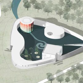 L’opera, che in più volumi sviluppa una superficie coperta di 1.300 metri quadrati su un lotto triangolare di 3.600, è stata commissionata a Wutopia Lab dal Sino-Ocean Group a Beidaihe, località turistica marina sul mare di Bohai, un profondo golfo del Mar Giallo nella provincia settentrionale dell’Hebei.