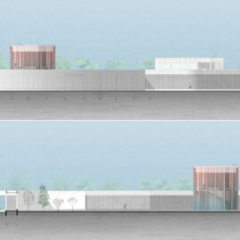 Percorrendo invece a piano terra il corridoio della galleria d’arte, mentre l’intensità luminosa proveniente dall’esterno si riduce, si raggiunge il teatro e, proseguendo, il colorato volume cilindrico dedicato allo yoga, luogo preposto alla relazione con sé stessi più che con il prossimo.