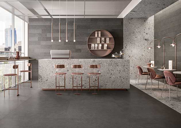 Silver Grain reinterpreta fedelmente tutta l’eleganza delle pietre naturali per decorare gli ambienti con estrema bellezza, restituendo una visione contemporanea degli spazi.