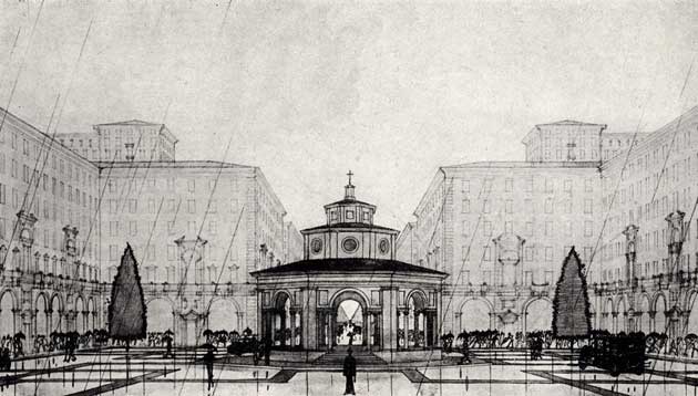 Piero Portaluppi e Marco Semenza, Progetto Ciò per amor, la chiesa di S. Carlo al Lazzaretto nella nuova piazza sulla trasversale Nuova Stazione-Porta Venezia