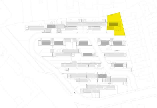 Masterplan del complesso residenziale a Marina di Ragusa, con evidenziata in giallo l´abitazione a7