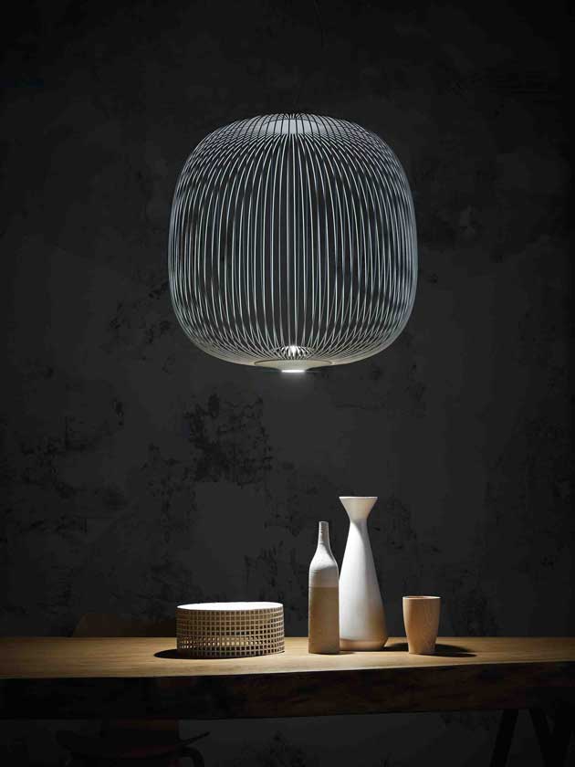 Si ispira ai raggi di bicicletta da cui prende il nome Spokes, la nuova famiglia di lampade disegnata da Garcia Cumini Associati (Vicente Garcia Jimenez e Cinzia Cumini) che Foscarini ha presentato all’ultimo Euroluce: una lampada dalla forma morbida e dal volume leggero che contiene la luce, lasciandola filtrare nello spazio.