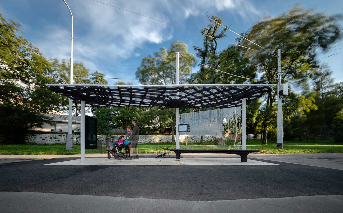 La pensilina di Praga, completa di panchina e pannelli informativi, è il primo intervento di So Concrete nel campo dell’arredo urbano.