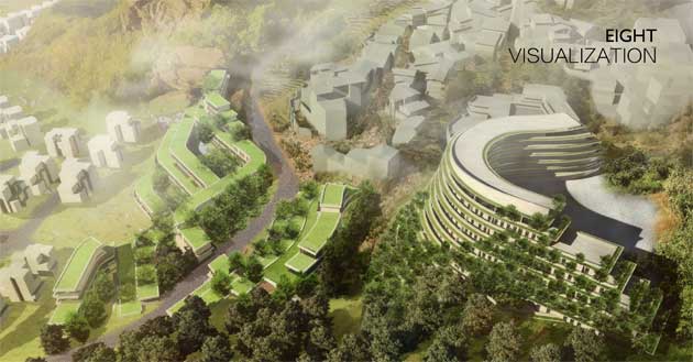 Fortemente ispirato nella tecnologia al Bosco Verticale di Milano e nel design alla topografia e al paesaggio del luogo l’edificio, situato all’interno di un masterplan di sviluppo turistico di 400 ettari, avrà un’impronta al suolo di 7.784 mq, una slp di 31.200 mq e 250 camere distribuite su 16 piani.