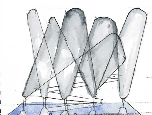 Uno schizzo progettuale del futuro museo (credits Steven Holl Architects)