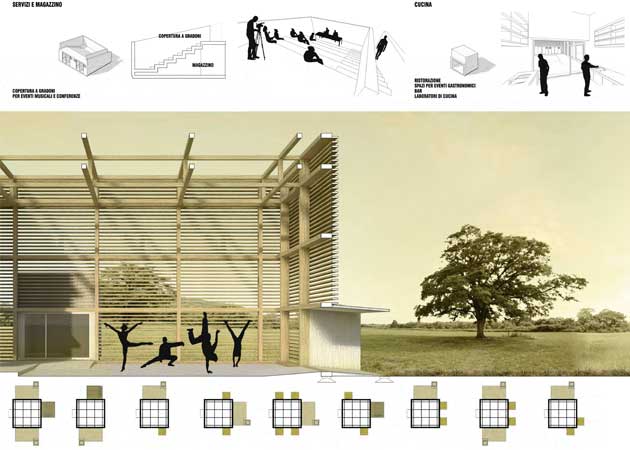 Il Recinto Rurale intende diventare una nuova piazza destinata ai quartieri circostanti per accogliere eventi e opportunità di partecipazione, scambio e contaminazione fra le persone. Proprio in quest’ottica, il prototipo che verrà realizzato nel padiglione 4 della fiera a Rho da Moretti Interholz, azienda specializzata in strutture e costruzioni in legno lamellare, è destinato a ospitare un articolato programma di appuntamenti diventando una sorta di banco di prova sperimentale in vista dell’evento del 2015.