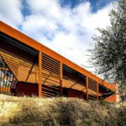Come un cannocchiale sul paesaggio, l’architettura si caratterizza per la scelta della ceramica con tecnologia ventilata a giunto aperto, che unisce protezione dal surriscaldamento estivo, aiuto allo smaltimento dell’umidità dei muri in inverno, protezione dagli agenti atmosferici, da insetti, animali, urti e rumori esterni.