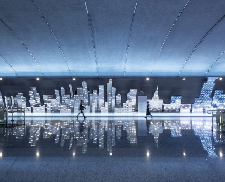 Una brillante Shanghai stilizzata nella nuova stazione della metro