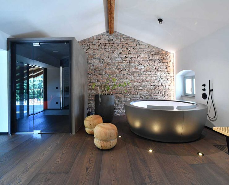 Grandi nodi e spaccature stuccate a filo valorizzati da finiture naturali che esaltano l’essenza del…