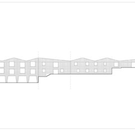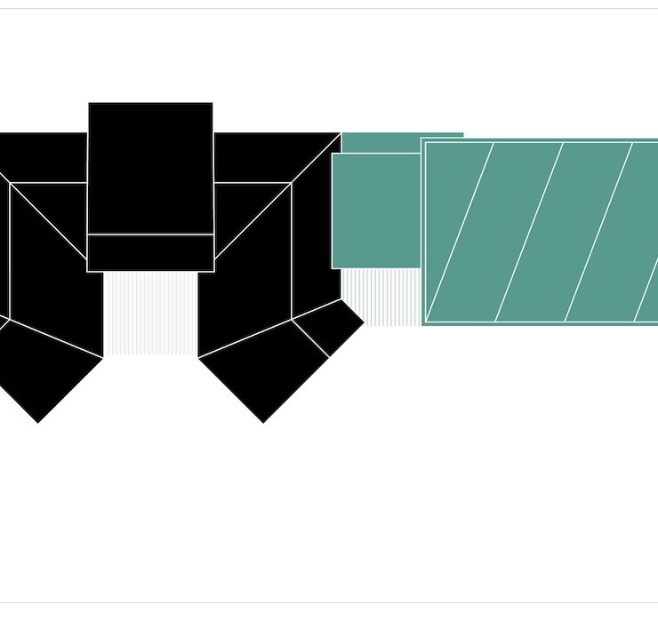Le facciate del nuovo edificio sono caratterizzate da un motivo ‘tartan’ definito da differenti tonalità di verde e granulometrie dell’intonaco di finitura, il cui disegno si integra con le ampie finestre della facciata sud e le diverse inclinazioni del profilo della copertura.