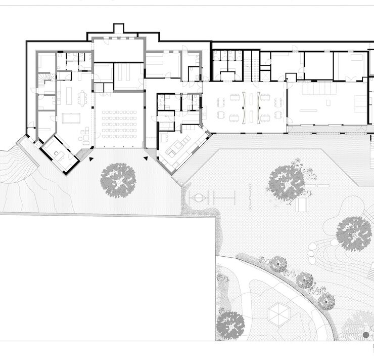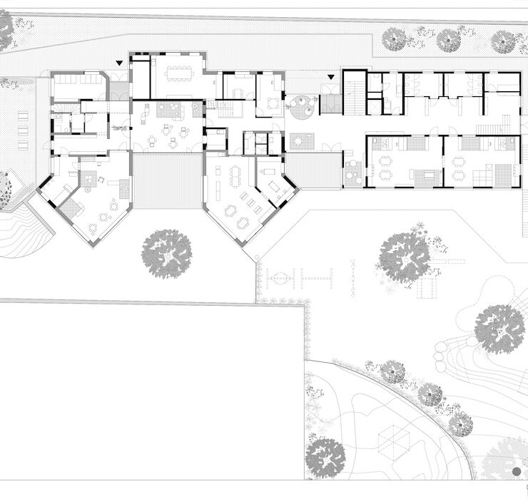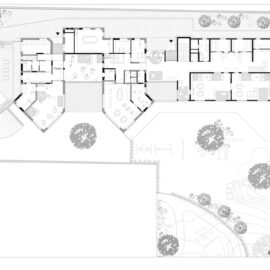 Il nuovo ampliamento mantiene lo stesso approccio funzionale. Con l’obiettivo di ottimizzare le risorse, i tre distinti programmi educativi della scuola dell’infanzia, dell’asilo nido e del centro giovanile condividono alcuni spazi comuni, resi inoltre più ampi e accessibili in risposta alle esigenze della comunità.