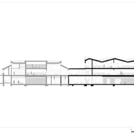 Il nuovo ampliamento ospita la scuola dell’infanzia: ai livelli superiori le diverse funzioni – sale per attività di gruppo, sala per il riposo, area per la lettura – con 4 sezioni per 100 bambini dai 3 ai 6 anni, mentre la mensa e la palestra sono collocate al livello inferiore, in connessione con il parco giochi esterno.