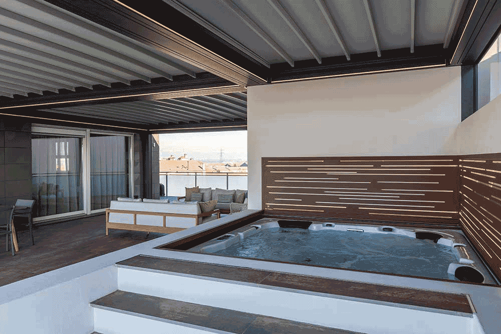Il nuovo spazio outdoor rispecchia le esigenze dei proprietari, che desideravano “creare un terrazzo dall’effetto wow” e allo stesso tempo uno spazio multifunzione da sfruttare tutto l’anno, adatto per una cena d’estate con gli amici, per una seduta in idromassaggio o semplicemente per un momento di tranquillità sdraiati sul lettino.