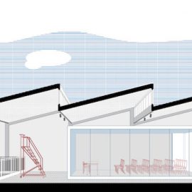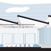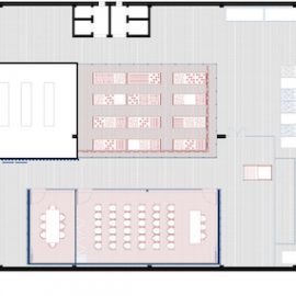 TH01 è caratterizzato da volumi con caratteristiche e funzioni diverse: area accoglienza, zona esposizioni, laboratorio, aera meeting/convegni, zona eventi.
