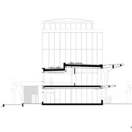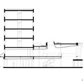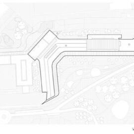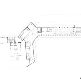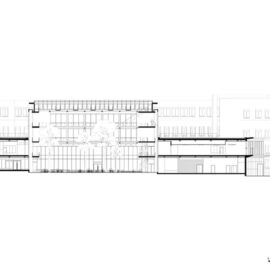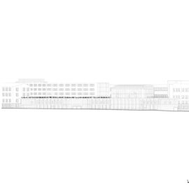 La struttura architettonica risponde a due sfide primarie: la trasparenza e la prospettiva di un’economia circolare, attenta all’impatto ambientale. La scelta della trasparenza è rappresentata dall’ampia facciata in vetro lunga 160 metri. Per una bassa impronta di carbonio, il consumo di cemento è stato estremamente limitato, a favore di materiali sostenibili, di recupero e locali.