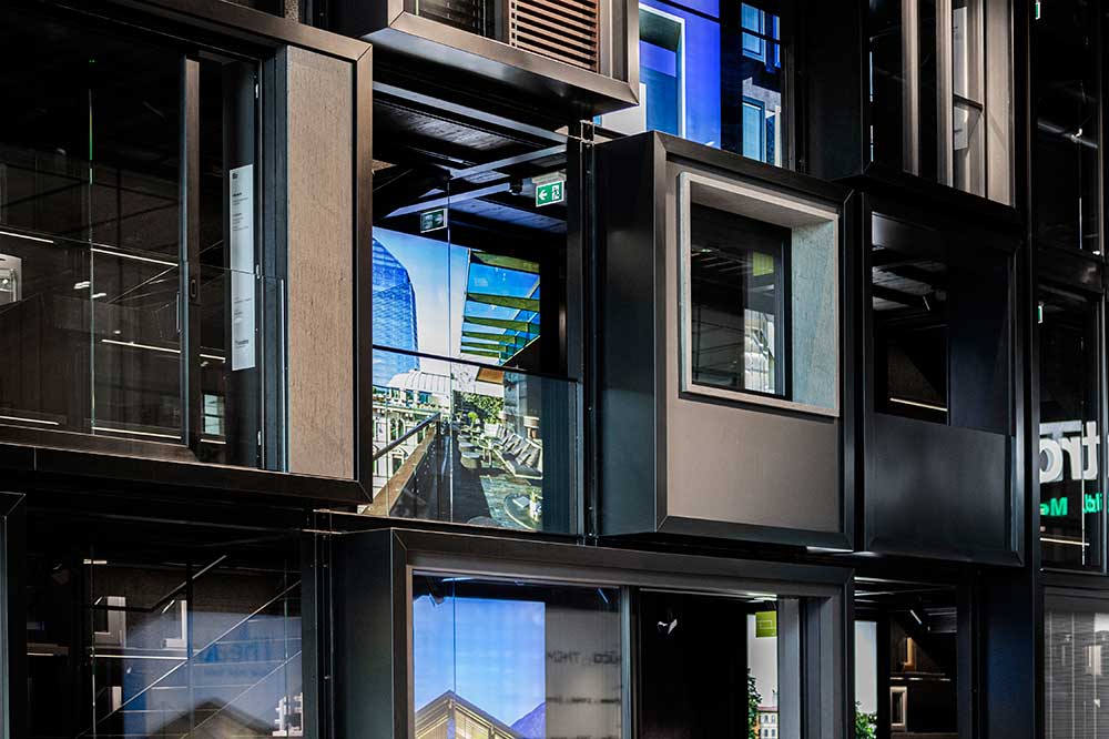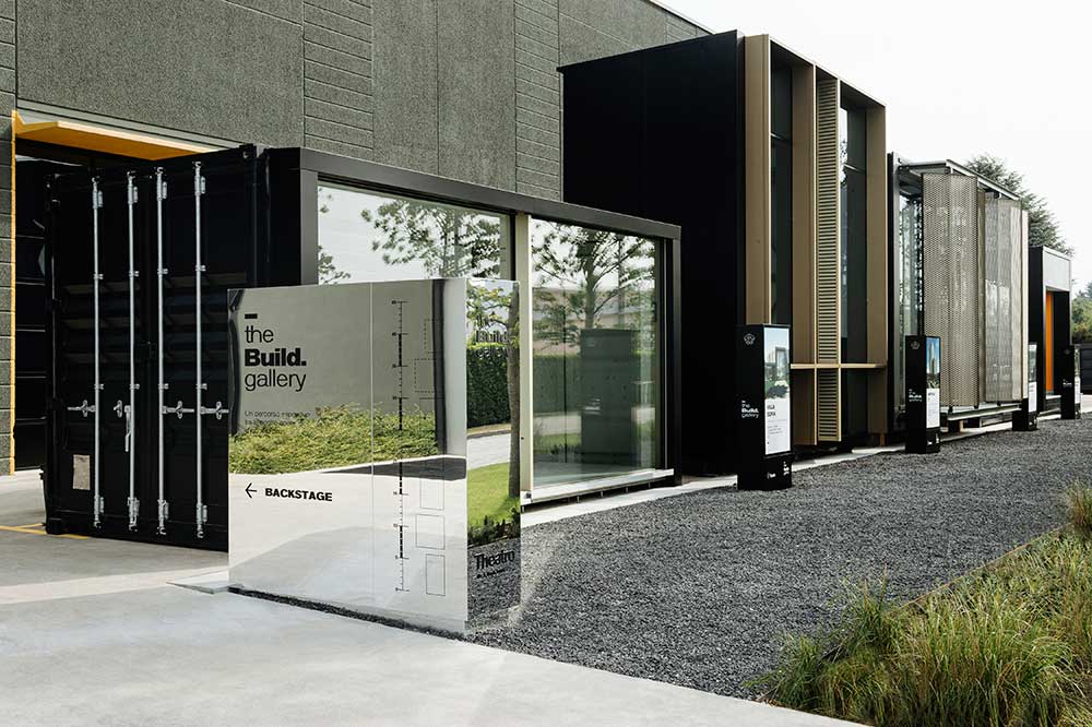Il complesso di Verano Brianza comprende ambienti di lavoro funzionali alla condivisione, uno showroom che si trasforma in auditorium, un’area backstage dedicata alla sperimentazione fisica delle soluzioni e alla realizzazione dei progetti e da quest’anno anche The Build Gallery, un percorso alla scoperta dei mock-up realizzati da Theatro e dai suoi partner. Ciascuno di essi è una soluzione custom, che integra prodotti di involucro e non solo, sviluppata attraverso calcoli, ricerche, confronti tra i progettisti e le aziende partner.