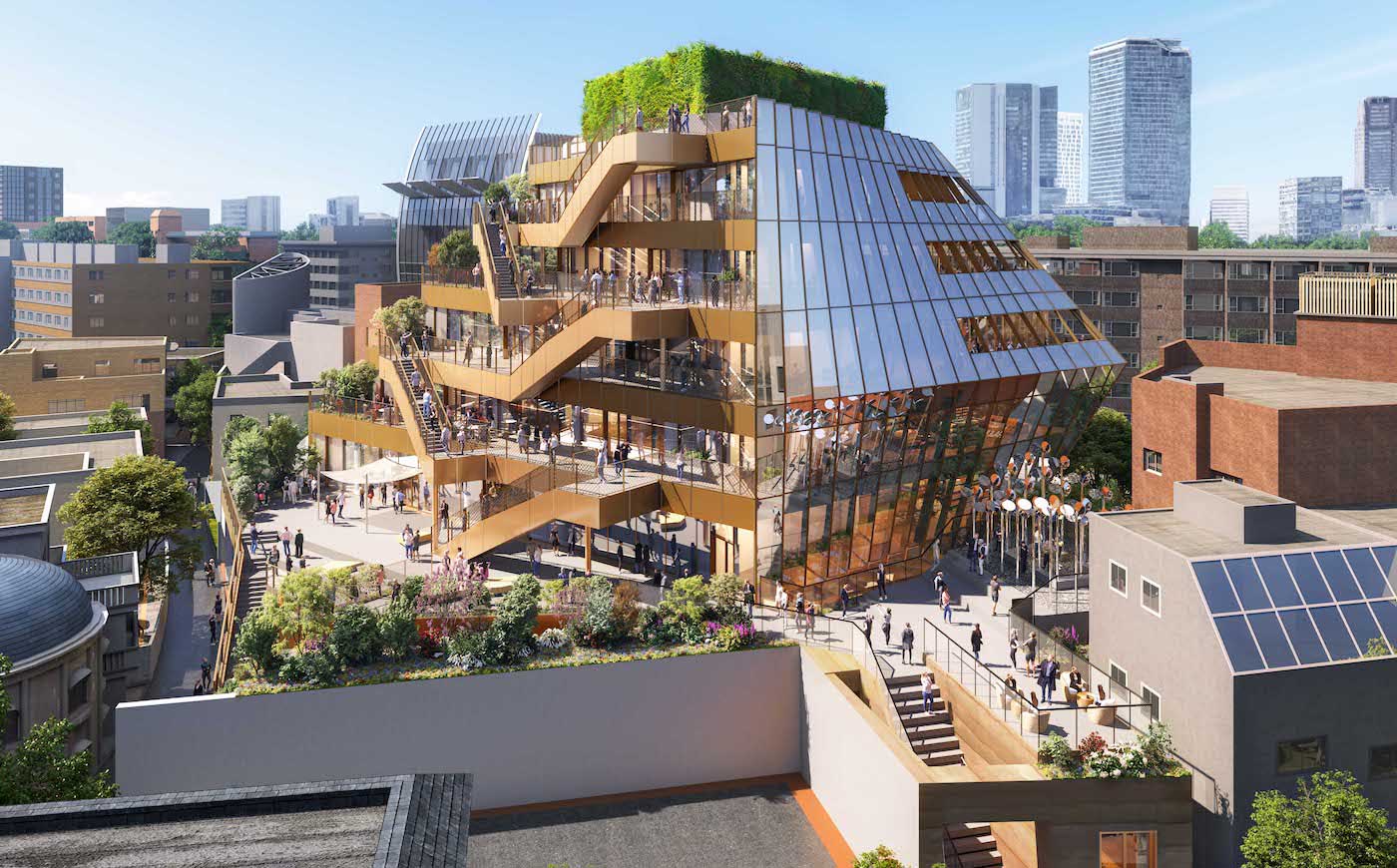 La facciata rivolta verso Harajuku invece sarà caratterizzata da terrazze e giardini pensili. Questo layout apre l’edificio al quartiere, creando punti d’incontro inaspettati nel cuore dell’edificio a ogni piano.