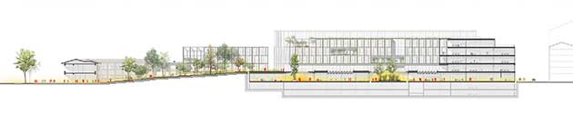 Sezione longitudinale del nuovo Federal Building di Torino (©Iotti+Pavarani) |