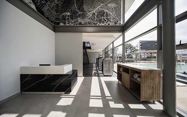 | Un mix di quarzi Silestone, in diversi colori e spessori, è stato invece impiegato per il rivestimento della lobby al piano terra e di diversi ambienti delle aree interne del grattacielo quali colonne, piani cucina, top bagno e banconi bar. |