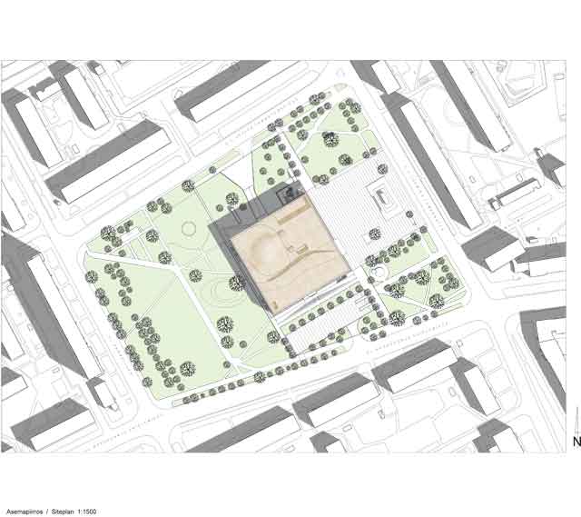 Questo luogo così denso di memoria è stato scelto per ospitare il Museo della storia degli Ebrei Polacchi progettato dagli architetti finlandesi Rainer Mahlamäki e Ilmari Lahdelma, vincitori di un concorso a inviti indetto nel 2005: un’architettura elegante e austera contenente la più grande e uniforme superficie a doppia curvatura mai realizzata finora, che taglia in larghezza e in altezza l’intero volume. Ispirato alle forme dell’adiacente Monumento agli Eroi del Ghetto, il rigore del prisma vetrato che definisce esternamente l’edificio è interrotto sul fronte est da un monumentale portale d’ingresso di grande impatto visivo. Questo passaggio ricurvo, illuminato dall’alto e rivestito da spritzbeton, rappresenta un’ideale separazione dei mari (“Yam Suf”) e un varco rituale attraverso la storia e la cultura millenaria degli ebrei polacchi.
