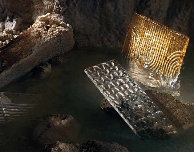Le formelle sono realizzate interamente a mano da maestri vetrai colando il vetro fuso e pressandolo in base a disegni personalizzabili. L’eventuale coloratura avviene spargendo scaglie colorate sul piano di lavoro prima della colata.