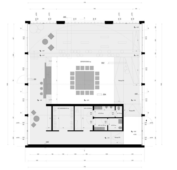 Il risultato è uno spazio che tende allo stesso livello di immaterialità e adattabilità di una nuvola di punti, con un’architettura fatta di pochi elementi e adattabile a una vasta gamma di utilizzi e contenuti.