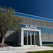 Le fasce nere di alluminio preaccoppiato sottolineano le sagome fondamentali dei volumi e raccordano con chiarezza i diversi materiali impiegati nella costruzione: la pietra, l’alluminio, la lana di roccia, il cemento industriale.