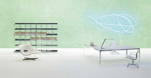 Sistema di tavoli per ufficio Flipper, Luciano Pagani, Angelo Perversi, 1998_2018 Tavoli per ufficio che si qualificano per le forme essenziali e l’accurato disegno dei particolari costruttivi. Solidi, stabili e leggeri, disponibili in diverse forme e dimensioni, i tavoli Flipper sono progettati per rispondere alle esigenze di un ambiente dinamico, capace di modificarsi in continuazione. Pochi componenti di un unico sistema costruttivo si combinano con semplicità per risolvere ogni aspetto progettuale, adattandosi all’evolversi dei luoghi di lavoro. |