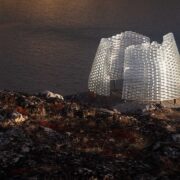 Permeabile e trasparente, l’architettura di quest’aula all’aperto – permanente ma facilmente rimovibile – è una casa per bambini dalle forme organiche, con listelli di Resysta che ne formano le pareti e si prolungano in copertura disegnando un tetto intrecciato dalle falde invertite.