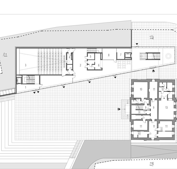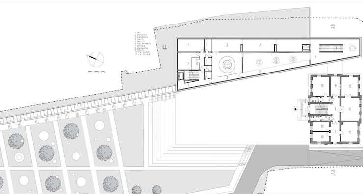 I progettisti, in seguito al concorso vinto nel 2016, hanno sviluppato un incontro armonioso tra il nuovo centro di divulgazione – un edificio minimalista inserito nel tessuto urbano tradizionale della città – e il volume storico della villa.