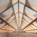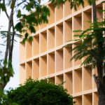 Ispirata alla casa tradizionale locale, la struttura a griglia del tetto, profonda 800 mm, riduce del 70 percento l’assorbimento della luce solare, offre riparo alla piattaforma esterna e allo stesso tempo assicura la ventilazione naturale, indispensabile in un clima tropicale, e una vista aperta sul paesaggio in mutamento.