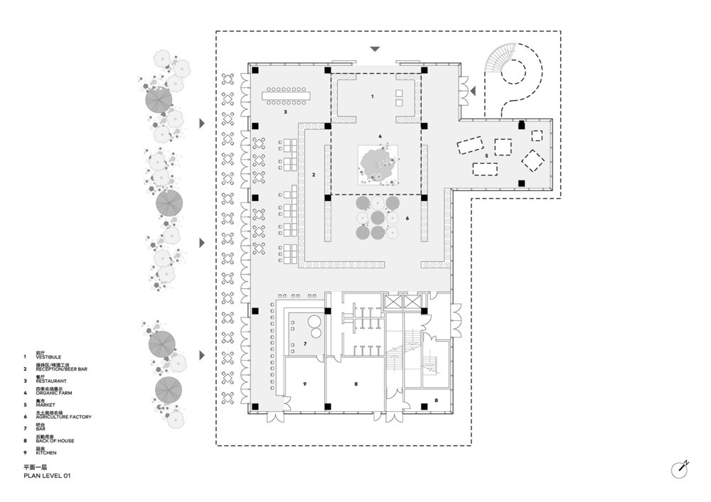 Il laboratorio sfuma i confini tradizionali tra natura e città e riduce la distanza tra tecnologia e vita. Il punto chiave del progetto è quello di confondere i confini tra interno ed esterno, massimizzando la comunicazione e le interazioni dei visitatori dentro e fuori l’edificio.