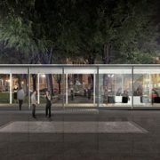 Tetti e pareti sono rivestiti in ottone brunito che si armonizza con le facciate in pietra e stucco sullo sfondo creando un’espressione scultorea unificata con visuali aperte verso il Palazzo Reale.