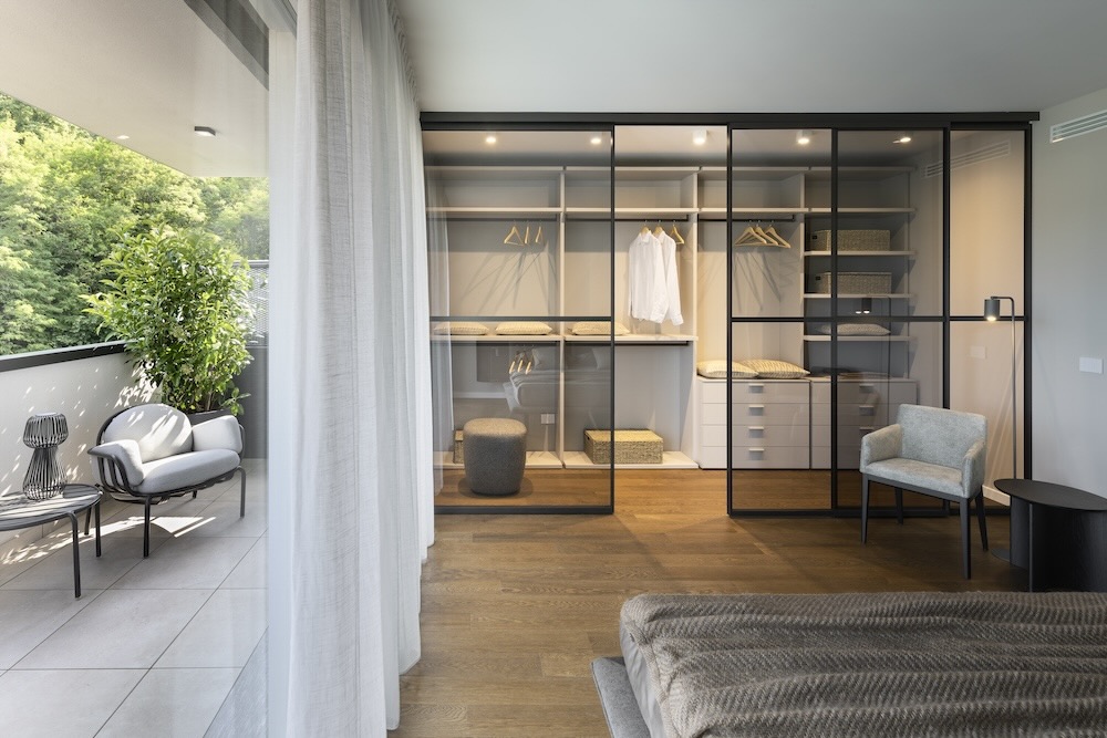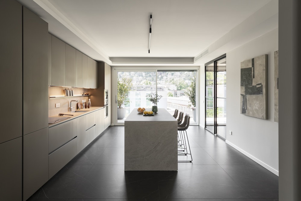 Gli ambienti, valorizzati da un’ampia terrazza panoramica, ospitano arredi di Ernestomeda per la cucina, Electrolux e Falmec per gli elettrodomestici, Novamobili, Cinquanta3 e Nidi per le aree notte e di servizio, Flos e Nemo Lighting per l’illuminazione.