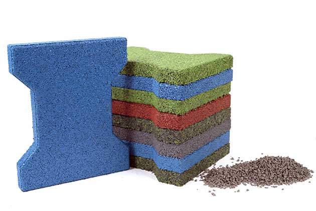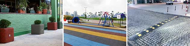 Tre delle centinaia di possibili applicazioni della gomma riciclata |