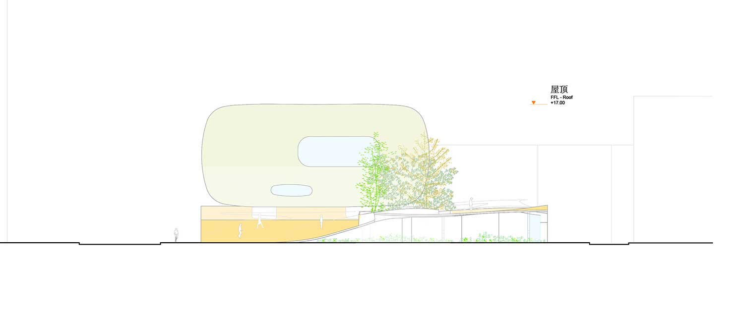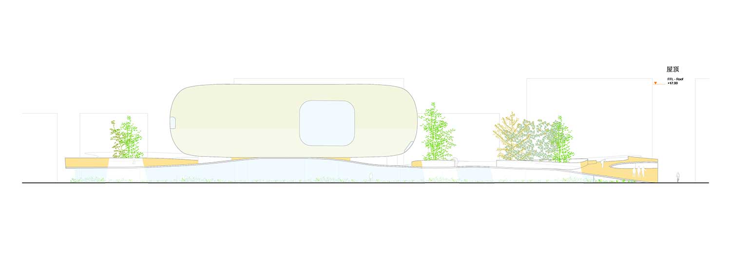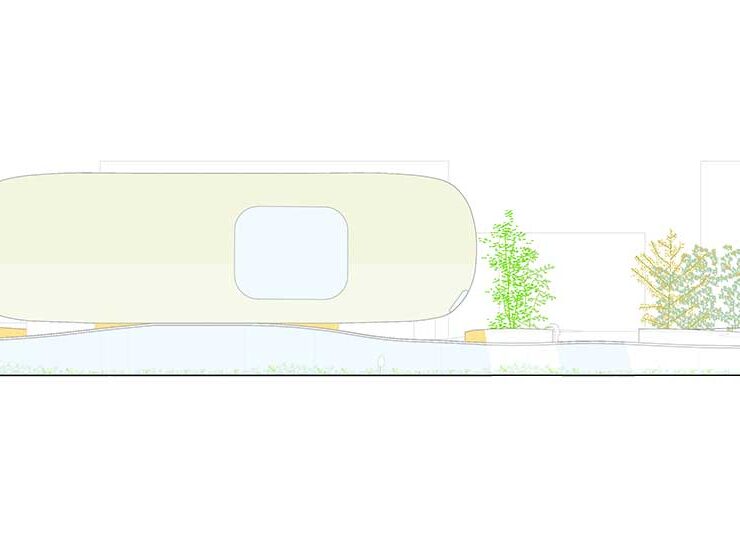 Trasparenza e solidità, natura e tessuto urbano, linearità e forme organiche: il progetto di selgascano, vincitore di un concorso per un nuovo centro espositivo nel distretto di Xicheng a Pechino, mira a ridefinire un intero ambito urbano con una copertura ondulata che diventa una nuova piazza pubblica vegetata e un volume superiore globoidale che appare galleggiare sopra il basamento trasparente.