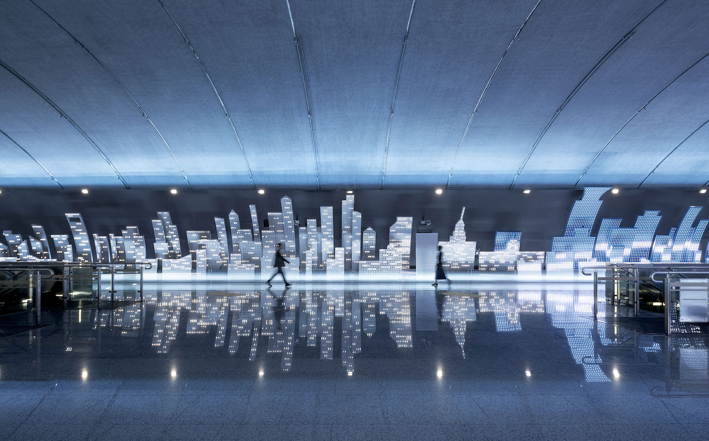 Il progetto rappresenta ambienti e paesaggi urbani facilmente riconoscibili dagli abitanti di Shanghai: il piano terra della hall della stazione, visto come il fiume Huangpu, è affiancato da scene cittadine caratteristiche di Pudong e Puxi, e le due estremità della hall riflettono il futuro della città attraverso una visione astratta, di grande impatto.