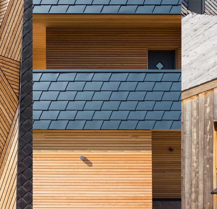 - Materiale del rivestimento esterno TECU OXID spessore 8/10 mm in lastra cieca e preforato con foratura Ø 7 mm e passo 10 mm commercializzato da Alpewa