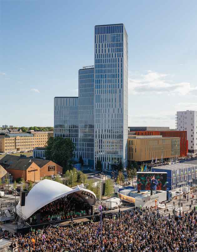Hotel, centro congressi e sala concerti in un unico complesso fra i canali di Malmö. Una cittadella hi-tech dinamica e funzionale, progettata dallo studio Schmidt-Hammer-Lassen Architects e nominata al Kasper Salin Prize 2015, il più prestigioso premio svedese d’architettura.