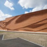 Naturalmente, modellare materie dure come il marmo o l’alabastro per farle apparire come veli – i progettisti affermano di aver tratto ispirazione per la facciata dalla statua di Beethoven di Max Klinger, esposta in un museo di Lipsia – è antica quanto la storia dell’arte ma mai se n’era vista una realizzazione architettonica dove gli elementi in cotto lavorano come pixel fuori scala.