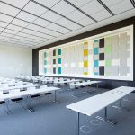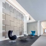 Elementi questa volta matericamente tessili ricorrono naturalmente anche nel design degli interni con ampio uso del feltro che insieme alla grande luminosità contribuisce al comfort degli ambienti.