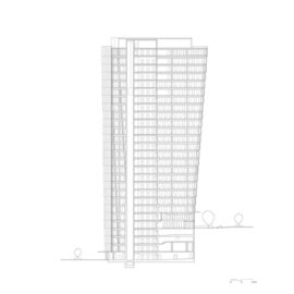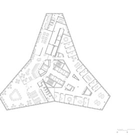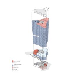 La geometria della torre, che estende gradualmente il suo perimetro man mano che si innalza nel cielo, minimizza l’impronta al suolo, mentre fornisce spazi per uffici flessibili che beneficiano di viste ampie e di un’abbondanza di luce naturale.