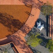 La scalinata di collegamento tra i due edifici fornisce un percorso aggiuntivo da e verso la vicina stazione della metropolitana e la zona residenziale sull’acqua.