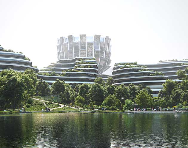 Quasi completata la costruzione del Centro Congressi, Zaha Hadid Architects ha diffuso nuove immagini del masterplan di Unicorn Island, l’area in sviluppo di Tianfu a sud di Chengdu, capoluogo della provincia cinese del Sichuan dove si produce circa la metà dei chip dei portatili in uso in tutto il mondo.