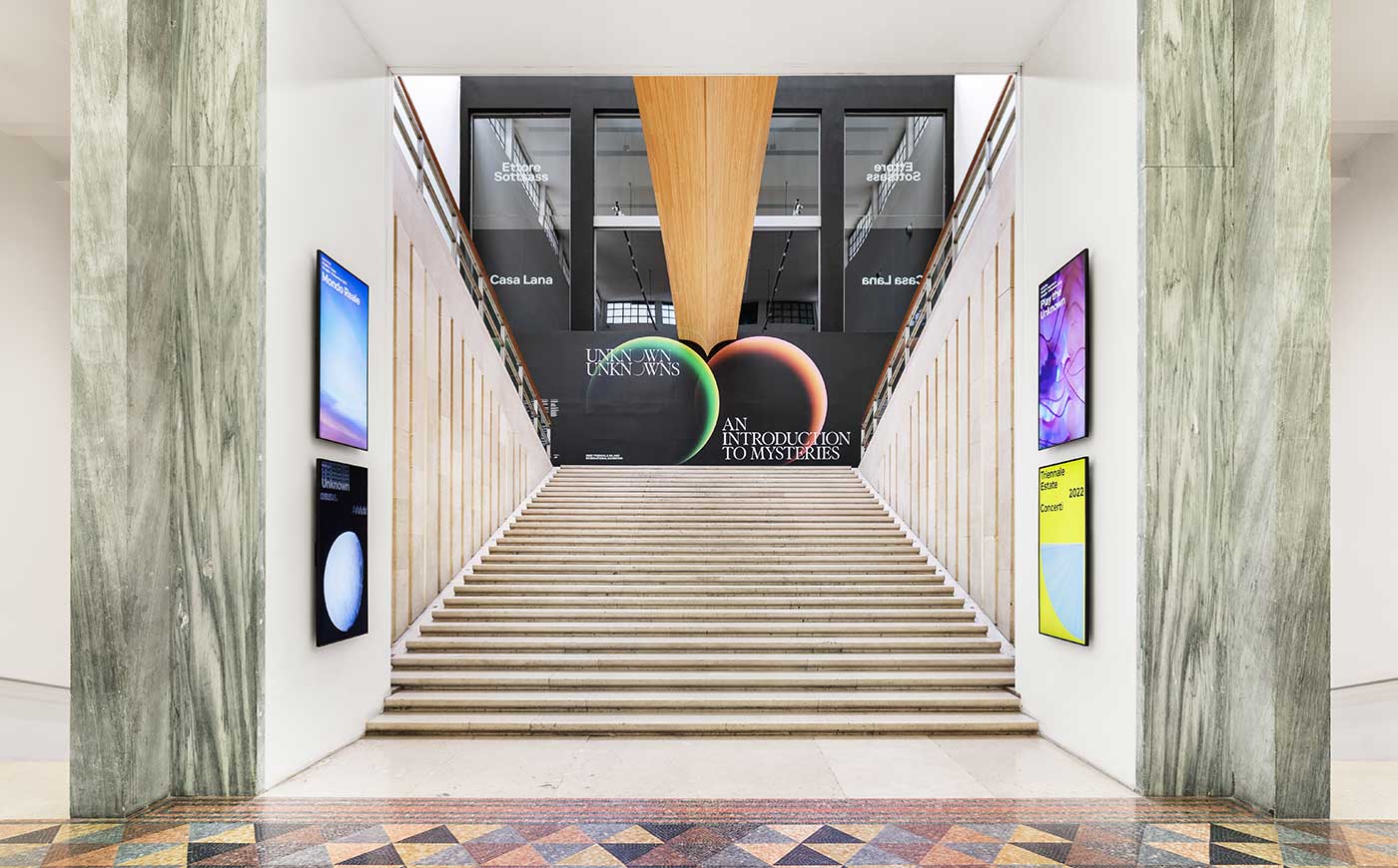 Articolata in doversi momenti espositivi che occupano tutti gli spazi del Palazzo dell’Arte, lungo un percorso segnato, a cominciare dall’esterno, da quattro installazioni sulle immagini e le voci del continente africano realizzate dal premio Pritzker 2022 Francis Kéré, Unknown Unknowns include la mostra tematica – curata da Ersilia Vaudo, astrofisica e Chief Diversity Officer all’Agenzia Spaziale Europea – una sezione dedicata alle ventidue partecipazioni internazionali, di cui Kéré è curatore, e le mostre Mondo Reale, ideata da Hervé Chandès, direttore artistico della Fondation Cartier pour l’art contemporain, e La tradizione del nuovo, curata da Marco Sammicheli, direttore del Museo del Design Italiano di Triennale.