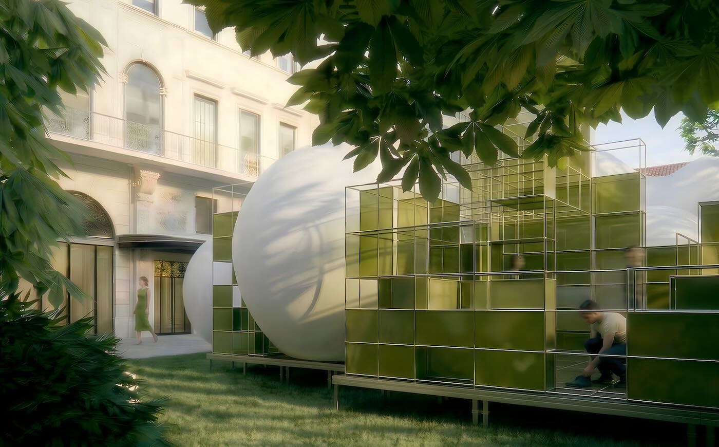 Il progetto di USM sviluppato con Snøhetta e Annabelle Schneider costruisce una sequenza spaziale doppia: presenza scultorea nel giardino e spazio raccolto.