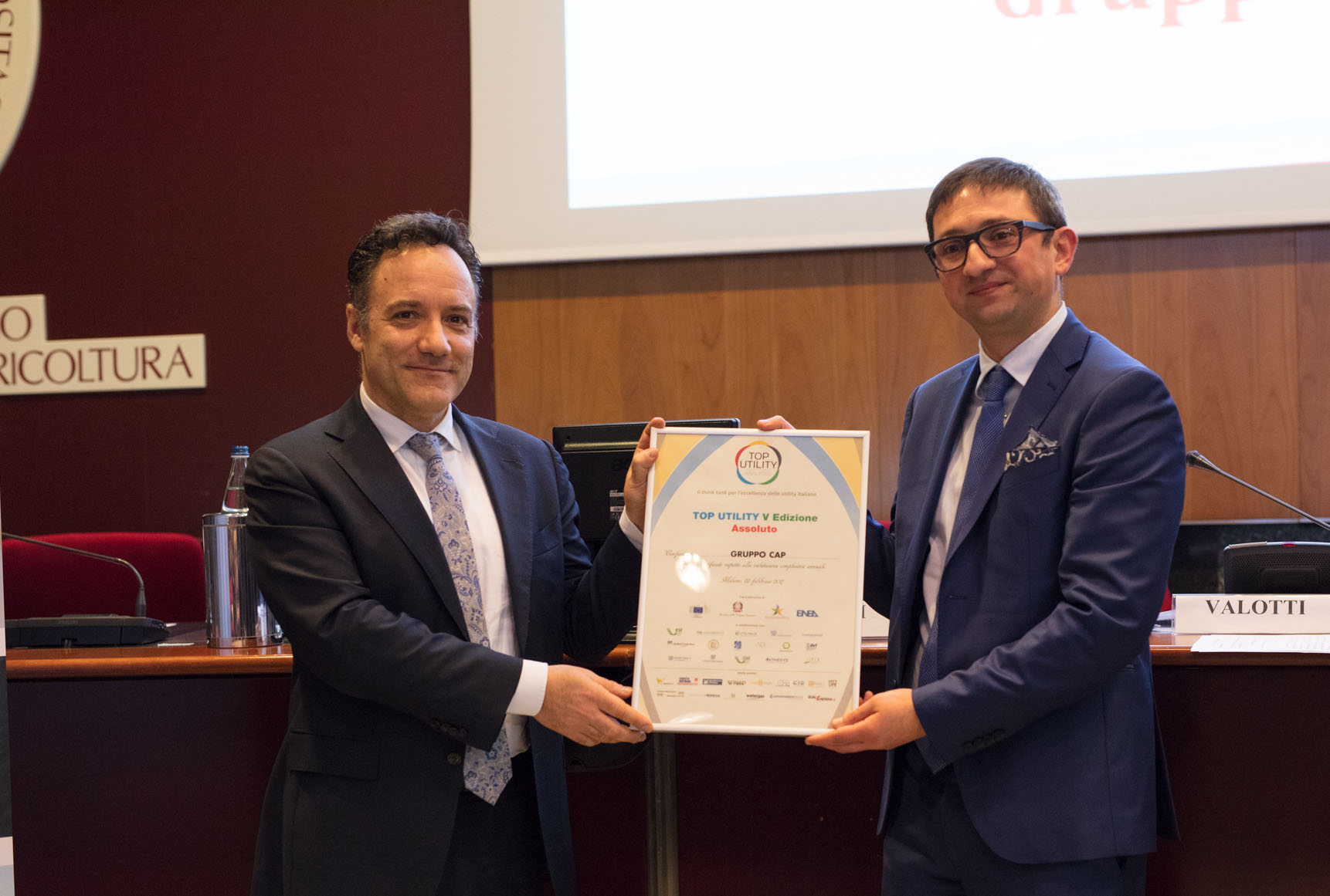 In occasione della presentazione del report 2017, il Gruppo Cap si è aggiudicato il premio Top Utility Assoluto, che premia le eccellenze dei servizi di pubblica utilità nei settori, gas, acqua elettricità e igiene urbana. La società milanese con sede ad Assago, si è piazzata davanti a giganti del calibro di Acea, a2a, Hera e Iren.